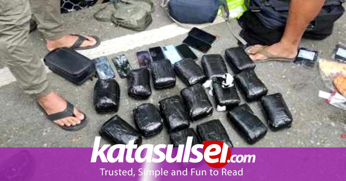 Bukan barang kecil—polisi menemukan 16 bungkus besar sabu dengan total berat sekitar 16 kilogram yang disimpan dalam tas gendong para pelaku.
