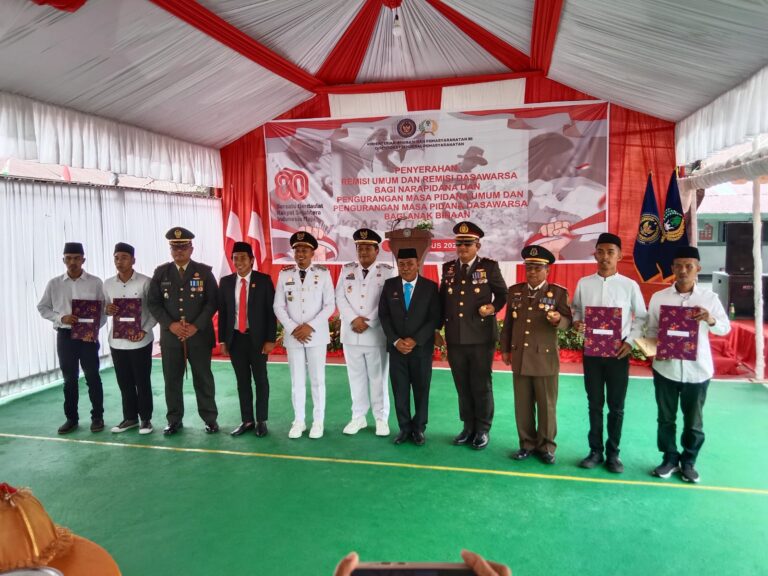 ENREKANG, Katasulsel.com – Usai memimpin upacara peringatan HUT ke-80 Republik Indonesia pada Minggu (17/8/2025), Bupati Enrekang H. Yusuf Ritangnga didampingi Wakil Bupati Andi Tenri Liwang menghadiri acara penyerahan remisi umum, remisi dasawarsa bagi narapidana, serta pengurangan masa pidana bagi anak binaan di Rumah Tahanan (Rutan) Kelas IIB Enrekang.