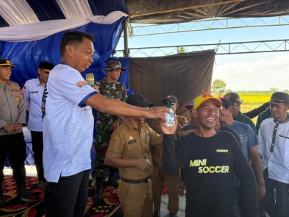 Acara itu ditutup dengan penyerahan pestisida kepada petani. Sederhana. Tapi simbolis. Bahwa pemerintah hadir. Bahwa bupati tidak hanya duduk di kantor, tapi turun ke sawah.