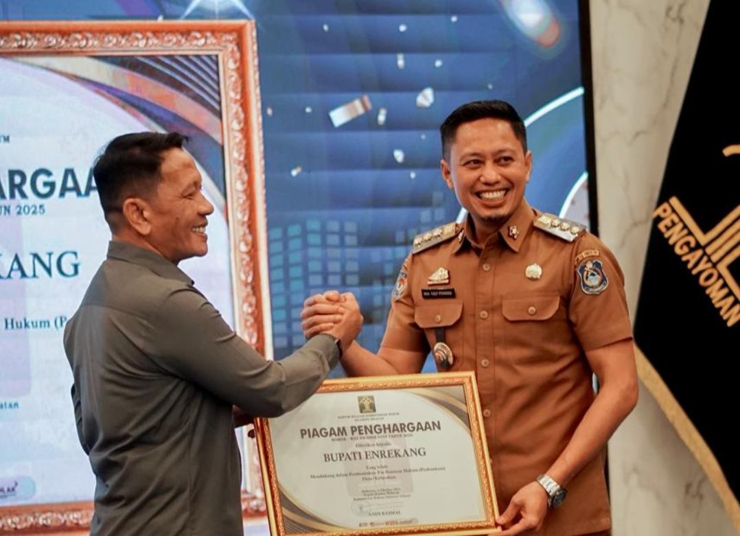 Enrekang, Katasulsel.com — Bupati Enrekang H. Muh. Yusuf Ritangnga menerima penghargaan dari Menteri Hukum dan Hak Asasi Manusia (HAM) RI atas komitmen Pemerintah Kabupaten Enrekang dalam membentuk Pos Bantuan Hukum (Posbakum).