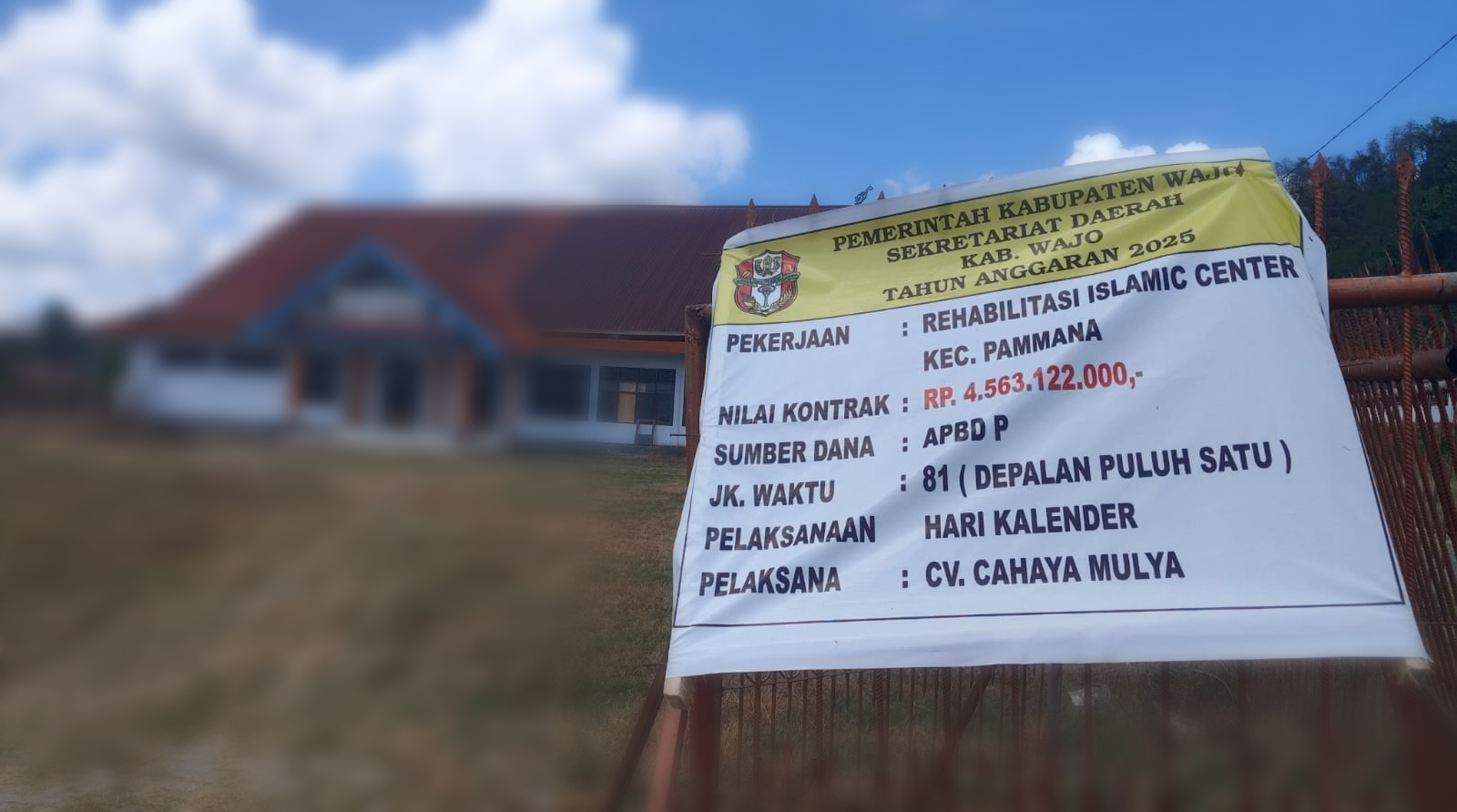 Wajo, Katasulsel.com — Proyek rehabilitasi Islamic Center Kecamatan Pammana, Kabupaten Wajo, Sulawesi Selatan, kembali mencuri perhatian publik.