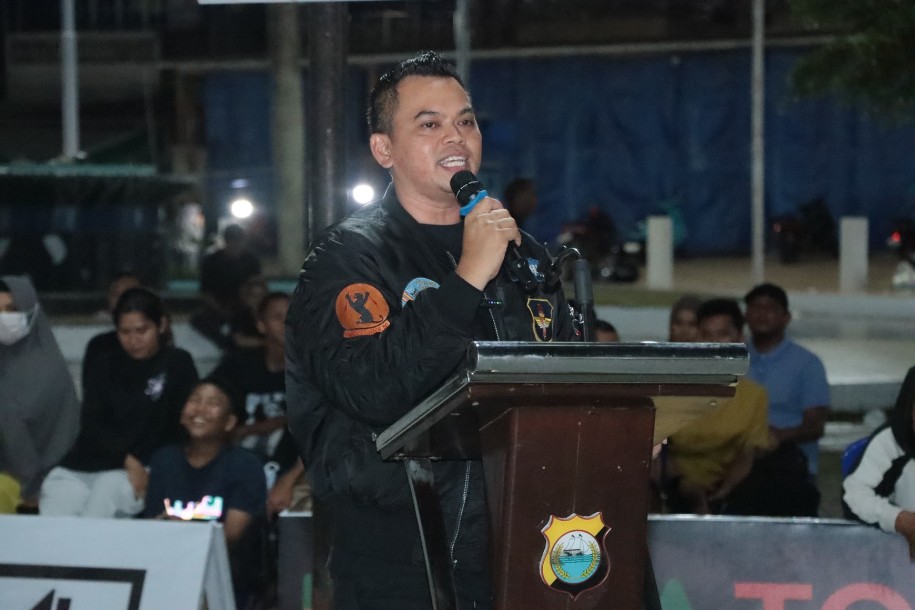 Di atas panggung, kamera wartawan menyorot AKBP Fantry Taherong yang tampak tersenyum.