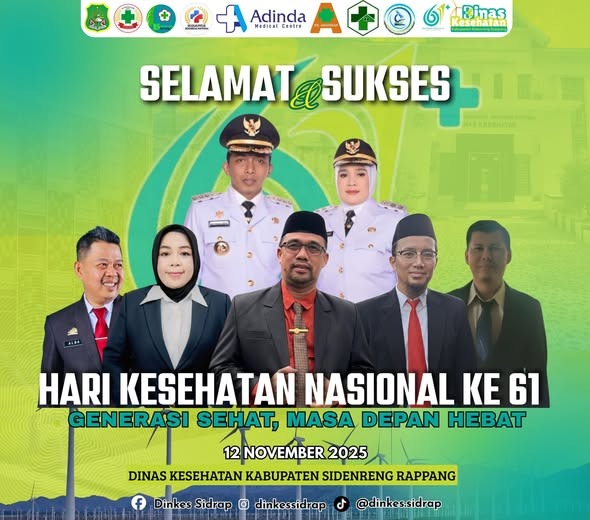 Sidrap, Katasulsel.com — Pemerintah Kabupaten Sidenreng Rappang (Sidrap) menggelar rangkaian kegiatan Semarak Hari Kesehatan Nasional (HKN) ke-61 tahun 2025, yang berlangsung sejak 27 Oktober hingga 12 November 2025. Peringatan tahun ini mengusung tema besar “Syiar Kesehatan, Semarak Keluarga Besar Kesehatan Menyongsong HKN 2025” dengan fokus pada pelayanan langsung, edukasi masyarakat, dan gerakan kebersihan lingkungan.