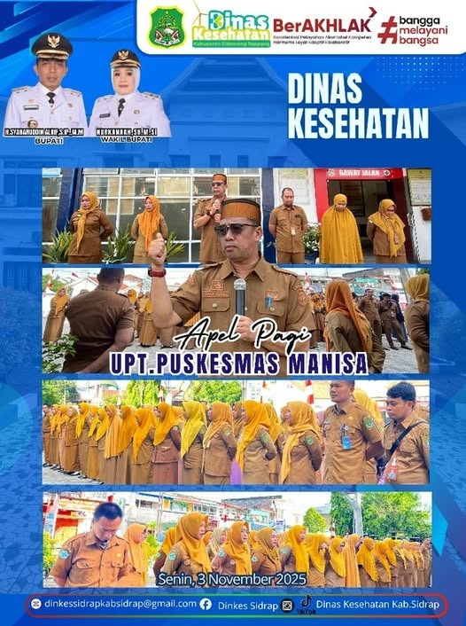 Sidrap, Katasulsel.com — Tiga dari empat belas program unggulan Pemerintah Kabupaten Sidenreng Rappang kembali ditegaskan Bupati H. Syaharuddin Alrif, S.I.P., M.M. bersama Wakil Bupati Hj. Nurkanaah, S.E. dalam amanat apel pagi rutin di Puskesmas Manisa, Kecamatan Baranti, Senin (4/11/2025).