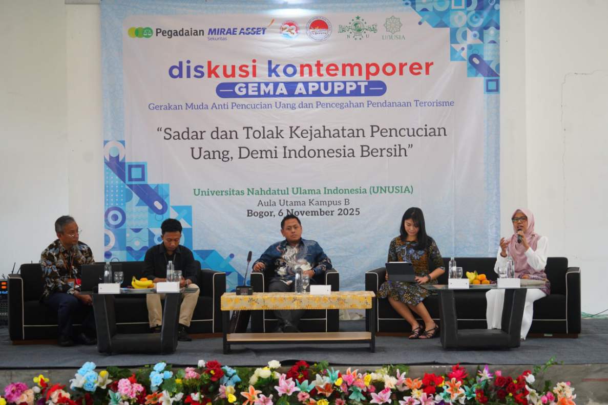 Jakarta, katasulsel.com — Universitas Nahdlatul Ulama Indonesia (UNUSIA) bersama Pusat Pelaporan dan Analisis Transaksi Keuangan (PPATK) menggelar kegiatan Diskusi Kontemporer GEMA APUPPT (Gerakan Muda Anti Pencucian Uang dan Pencegahan Pendanaan Terorisme) pada Kamis, 6 November 2025, di Kampus UNUSIA Jakarta. Acara ini menjadi momentum penting bagi dunia pendidikan dan lembaga negara untuk memperkuat literasi keuangan dan menolak segala bentuk tindak pidana pencucian uang (TPPU) serta pendanaan terorisme (TPPT) di kalangan generasi muda.