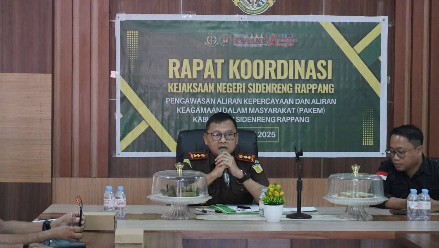 Sidrap, Katasulsel.com — Dalam upaya menjaga toleransi antarumat beragama dan memperkuat stabilitas sosial di daerah, Kejaksaan Negeri (Kejari) Sidenreng Rappang menggelar Rapat Koordinasi Tim Pengawasan Aliran Kepercayaan Masyarakat (PAKEM), Kamis 6 November 2025 pukul 10.00 WIB di Aula Kantor Kejari Sidrap.