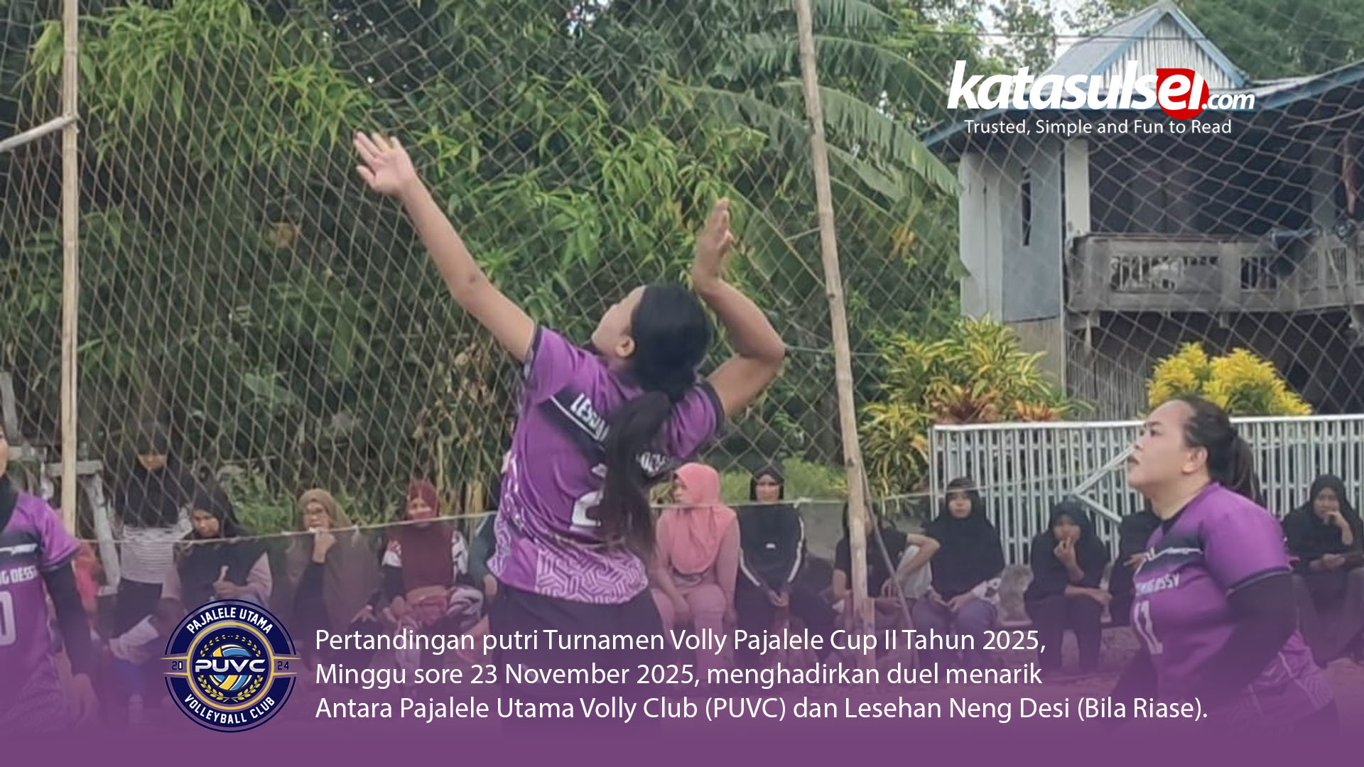 Rubber Set Panas di Sidrap, Lesehan Neng Desi Tumbangkan PUVC 2–1Sidrap, katasulsel.com — Pertandingan putri Turnamen Volly Pajalele Cup II Tahun 2025, Minggu sore 23 November 2025, menghadirkan duel menarik antara Pajalele Utama Volly Club (PUVC) dan Lesehan Neng Desi (Bila Riase).