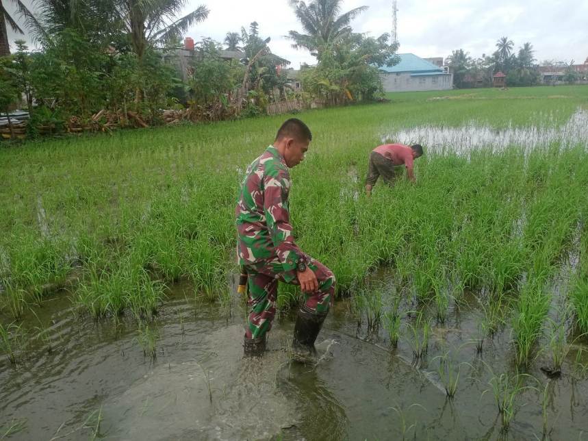 Awalnya, kerusakan padi tersebut membuat Wahidin terpukul. Hamparan tanaman yang ia rawat selama berminggu-minggu rusak begitu saja, menyisakan kebingungan dan rasa cemas menjelang musim panen. Namun situasi itu berubah ketika Babinsa datang, bukan sekadar memberi arahan, tetapi turun langsung ke sawah membantu proses tanam ulang.