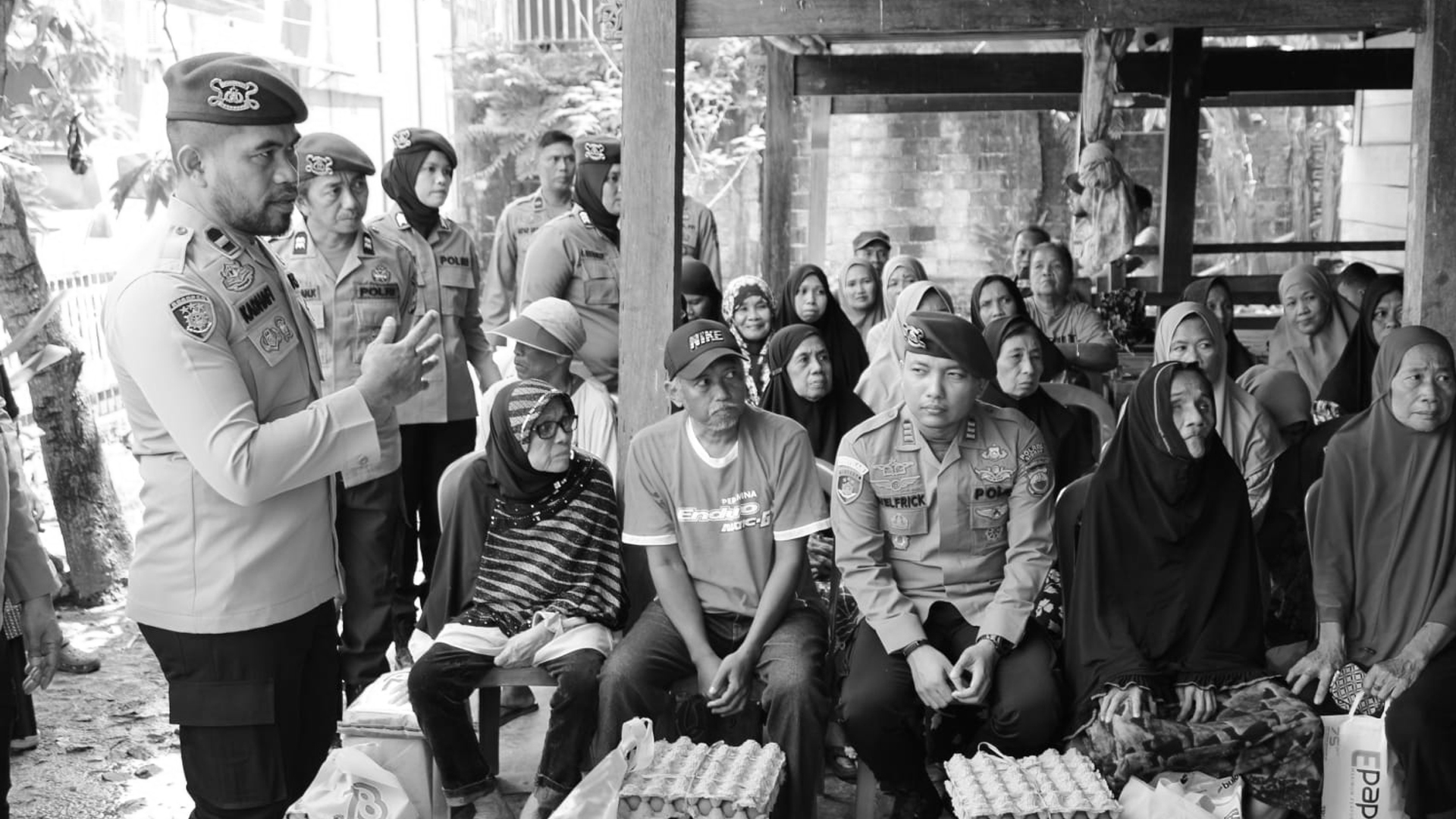Sekitar pukul 09.00, rombongan mulai bergerak. Beberapa paket bantuan digendong oleh personel. Ada pula yang menggunakan motor. Tidak ada pameran kamera. Tidak ada gaya dokumentasi berlebihan.