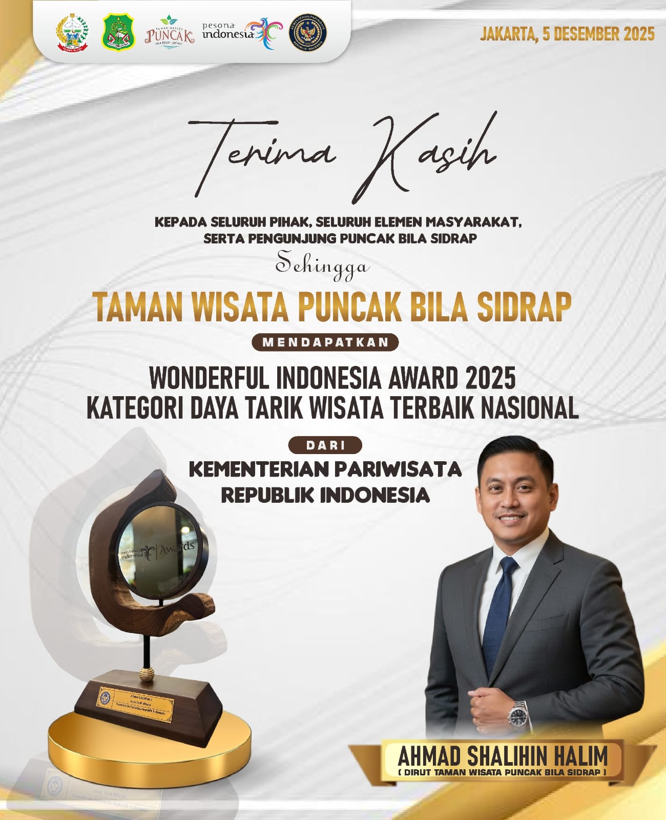 “Ini adalah kemenangan bersama. Puncak Bila bukan hanya destinasi, tetapi rumah besar kita. Kami akan terus menjaga identitas alamnya, memperkuat pelayanan, dan menjadikan Puncak Bila sebagai destinasi kelas nasional yang tumbuh berkelanjutan,” tegasnya.