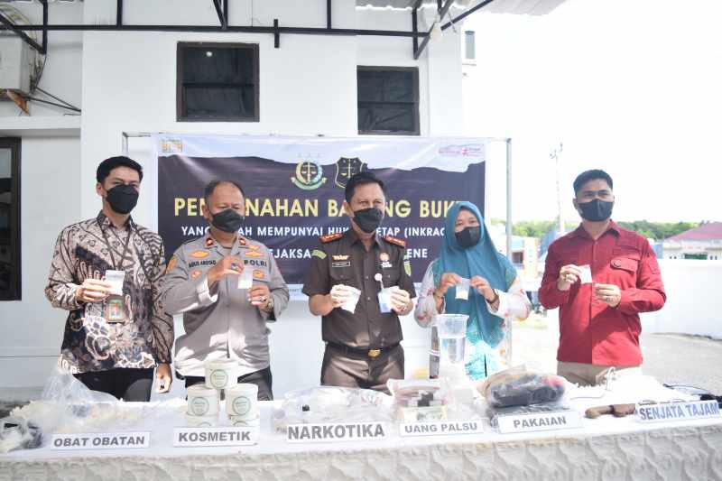 Barang bukti yang dimusnahkan beragam dan jumlahnya cukup fantastis. Di antaranya sabu seberat 0,929 gram, lebih dari dua ribu butir Trihexyphenidyl, puluhan alat hisap, ratusan lembar uang asing dollar Brasil, ratusan lembar mata uang euro palsu, pakaian, badik, parang, borgol, uang tunai rupiah, dokumen, hingga tas dan kosmetik hasil sitaan perkara. Seluruh daftar barang bukti dibacakan secara terbuka sebagai bentuk akuntabilitas.
