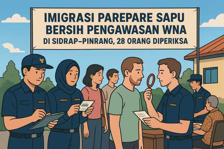 Makassar, katasulsel.com — Kantor Imigrasi Kelas II TPI Parepare menggelar Operasi Wira Waspada sebagai langkah penguatan pengawasan terhadap keberadaan dan aktivitas warga negara asing di Kabupaten Sidenreng Rappang dan Kabupaten Pinrang, Sulawesi Selatan. Operasi ini dilaksanakan selama dua hari, pada 11 hingga 12 Desember 2025.