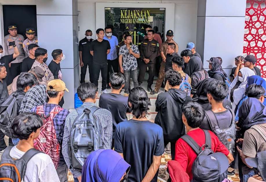 Massa aksi menggelar demonstrasi di dua titik, yakni Pelataran Pengadilan Negeri Enrekang dan Kantor Kejaksaan Negeri Enrekang. Ketegangan sempat terjadi ketika massa mendapati Kepala Kejaksaan Negeri Enrekang beserta jajaran kepala seksi tidak berada di kantor saat aksi berlangsung. Situasi sempat memanas ketika massa berupaya melakukan aksi simbolik pembakaran ban, namun berhasil dikendalikan aparat pengamanan.