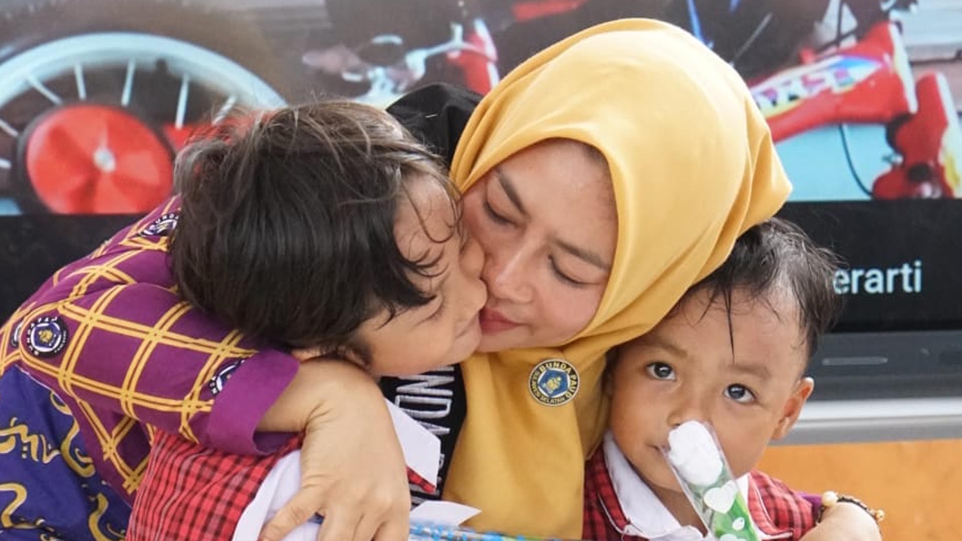 Di tengah riuh keceriaan anak-anak, tampak Bunda PAUD Sidrap, Haslindah Syaharuddin, memeluk satu per satu peserta didik dengan penuh kasih sayang, menghadirkan potret nyata cinta seorang ibu.