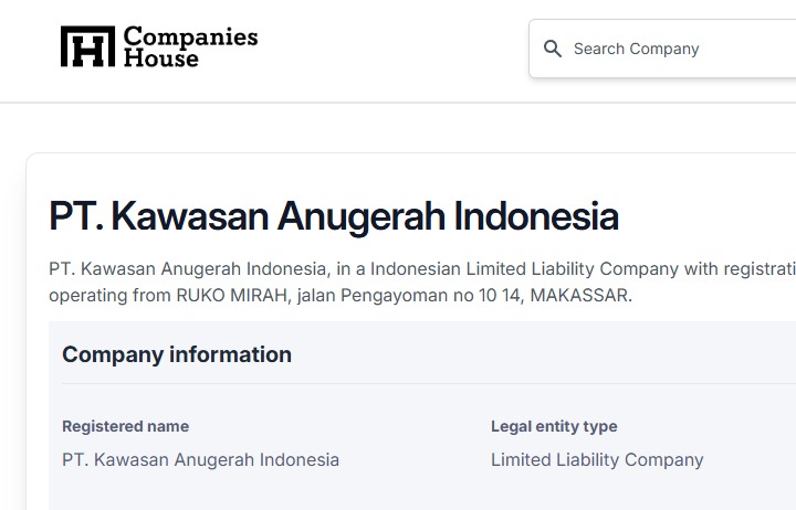 Di luar dokumen administratif tersebut, informasi publik mengenai profil perusahaan PT Kawasan Anugerah Indonesia relatif terbatas. Berdasarkan penelusuran redaksi, alamat kantor perusahaan tercatat berada di Ruko Mirah, Jalan Pengayoman No. 10–14, Kota Makassar.