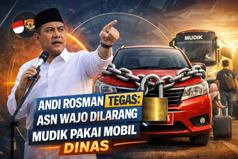 Wajo, Katasulsel.com — Bupati Wajo Andi Rosman mengambil posisi tegas menjelang musim mudik Lebaran 2026. Seluruh aparatur sipil negara di lingkungan Pemerintah Kabupaten Wajo dilarang menggunakan mobil dinas untuk kepentingan mudik. Larangan itu bukan sekadar imbauan, tetapi disertai ancaman sanksi bagi ASN yang melanggar.