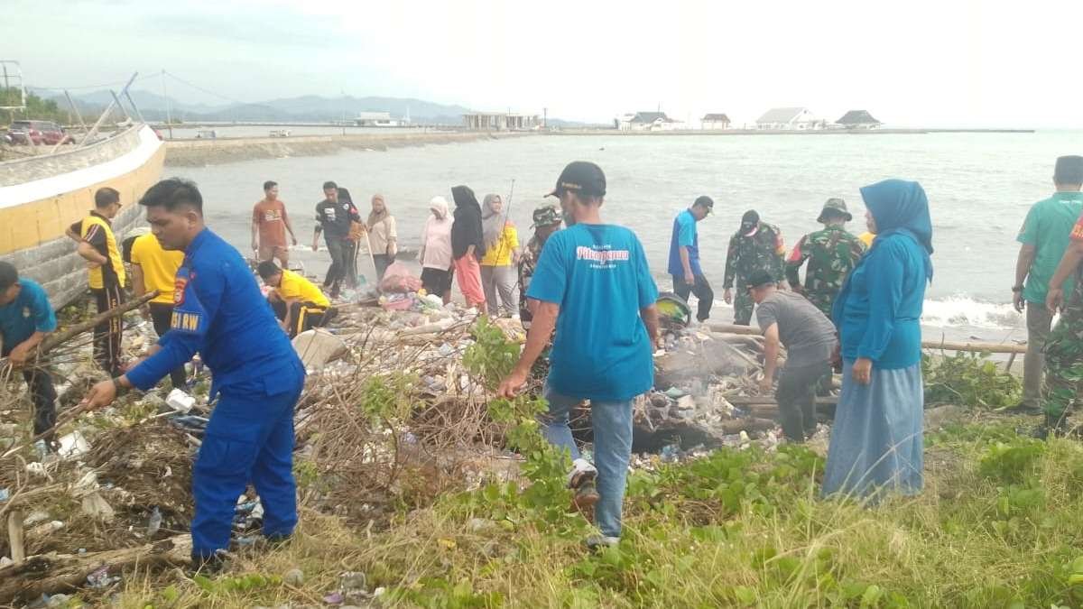 Sapu, karung, dan tangan-tangan sigap warga bergerak cepat, mengangkat sampah plastik, ranting kayu, dan limbah lain yang menumpuk di pesisir.