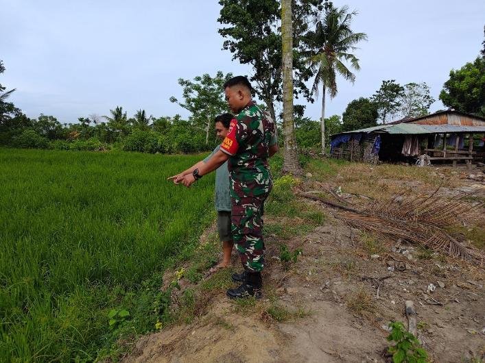 Kegiatan pendampingan ini bukan sekadar kunjungan biasa, melainkan bentuk pengawalan intensif terhadap proses produksi pangan di wilayah binaan. Serda M. Ali Hanapi bersama para petani melakukan pengecekan kondisi tanaman padi guna memastikan pertumbuhan yang optimal serta mengantisipasi adanya serangan hama atau kendala pengairan yang dapat menghambat masa panen.