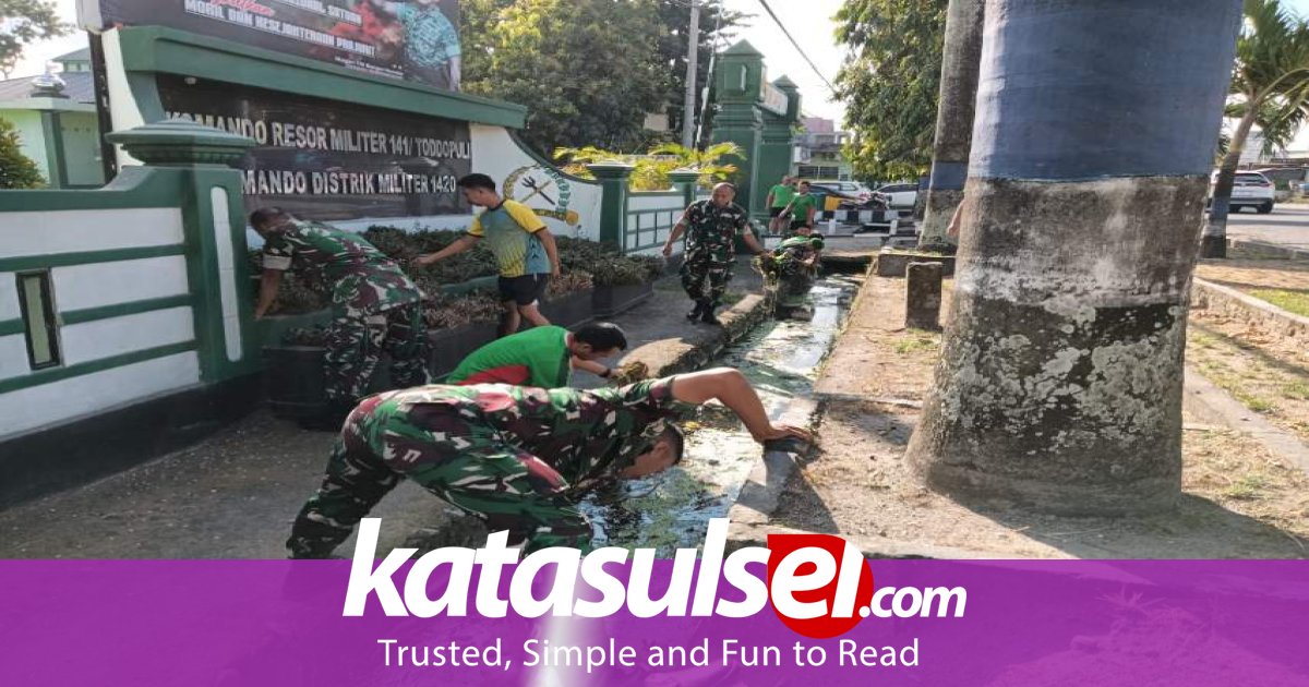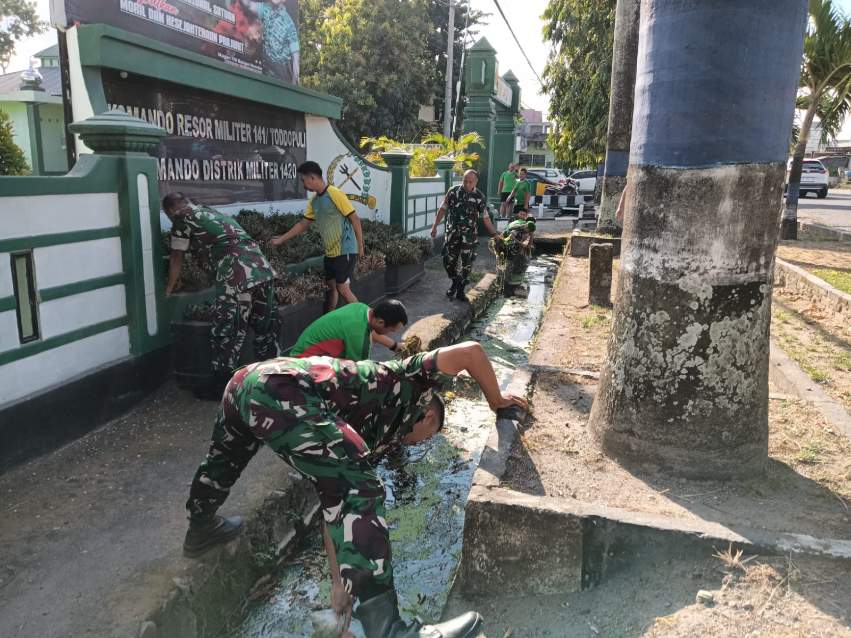 SIDRAP, Katasulsel.com – Dalam upaya mencegah terjadinya genangan air dan menjaga kebersihan lingkungan, Perwira Seksi Operasi (Pasi Ops) Kapten Cpl Junarman beserta anggota Kodim 1420/Sidenreng Rappang (Sidrap) melaksanakan kegiatan pembersihan selokan air di depan Kantor Makodim 1420/Sidrap, Selasa (14/04/2026).