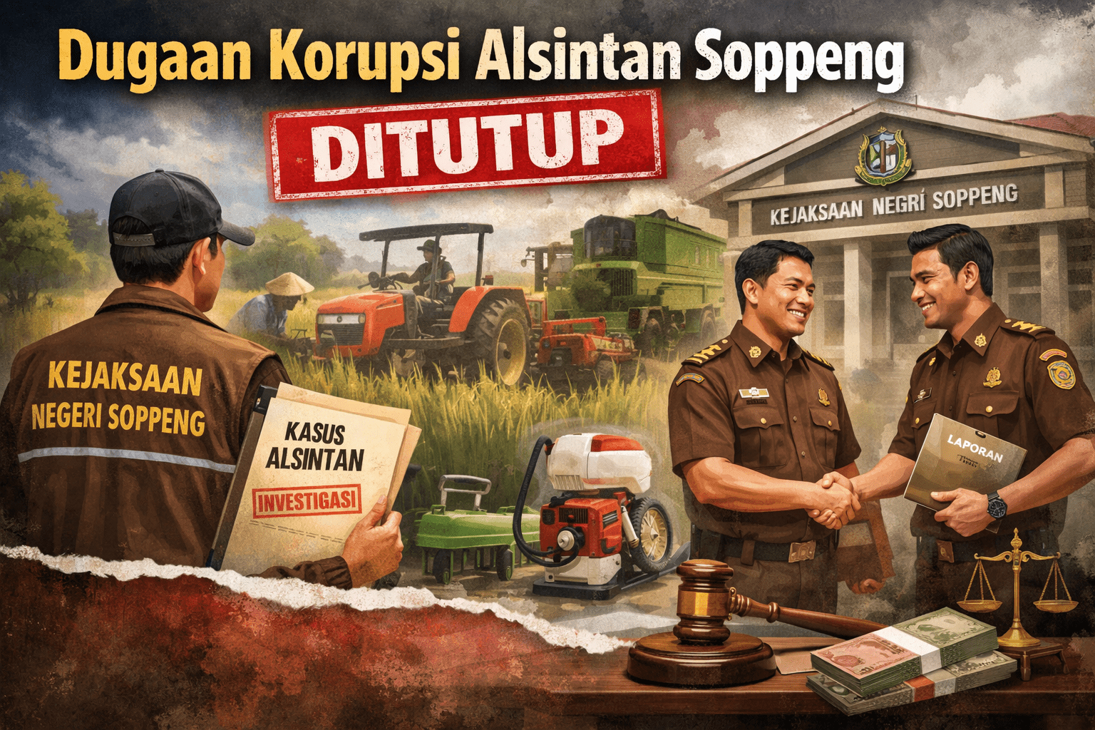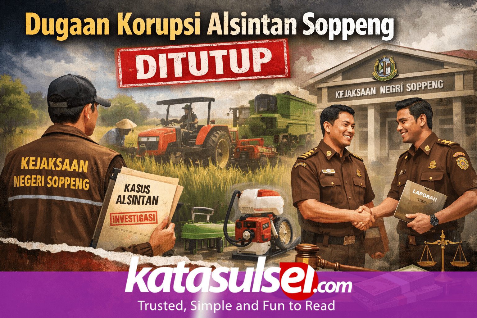 Soppeng, katasulsel.com — Riuh soal dugaan korupsi bantuan alat dan mesin pertanian (alsintan) di Kabupaten Soppeng akhirnya mereda.