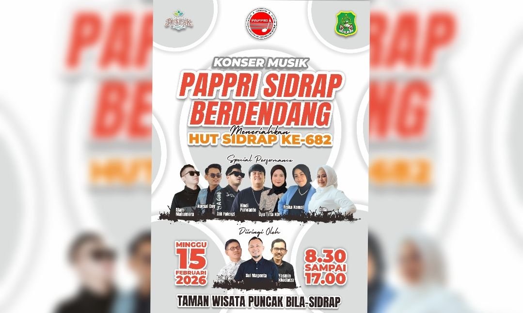 Join WhatsAppSIDRAP, Katasulsel.com β Fix, perayaan HUT Kabupaten Sidenreng Rappang (Sidrap) ke-682 tahun ini bakal naik level. Pengelola Taman Wisata Puncak Bila barengan sama PAPPRI Sidrap lagi nyiapin event musik yang vibes-nya nggak kaleng-kaleng, bertajuk βKonser Musik PAPPRI Sidrap Berdendang.β
