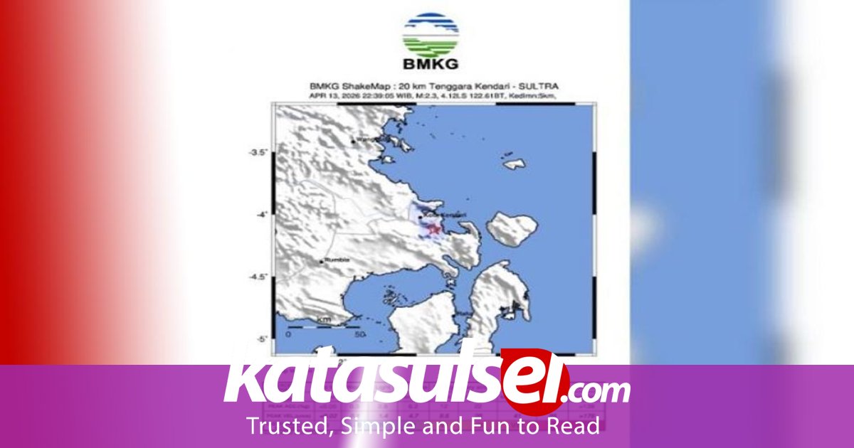 Jakarta, katasulsel.com– Getaran gempa bumi dirasakan warga di wilayah Konawe Selatan, Senin malam (13/4/2026) sekitar pukul 22.39 WITA.