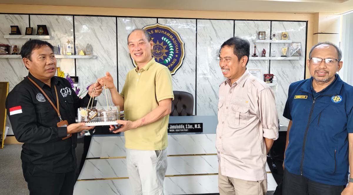 Sidrap, katasulsel.com – Lantai lima Gedung Rektorat UMS Rappang siang itu panas… eh, maksudnya ramai banget. Rektor Prof. Dr. Jamaluddin Ahmad tersenyum sambil jabat tangan Mister Chang Kuo An, tamu spesial dari Taiwan, yang datang untuk “silaturahmi tapi serius bahas magang internasional”.