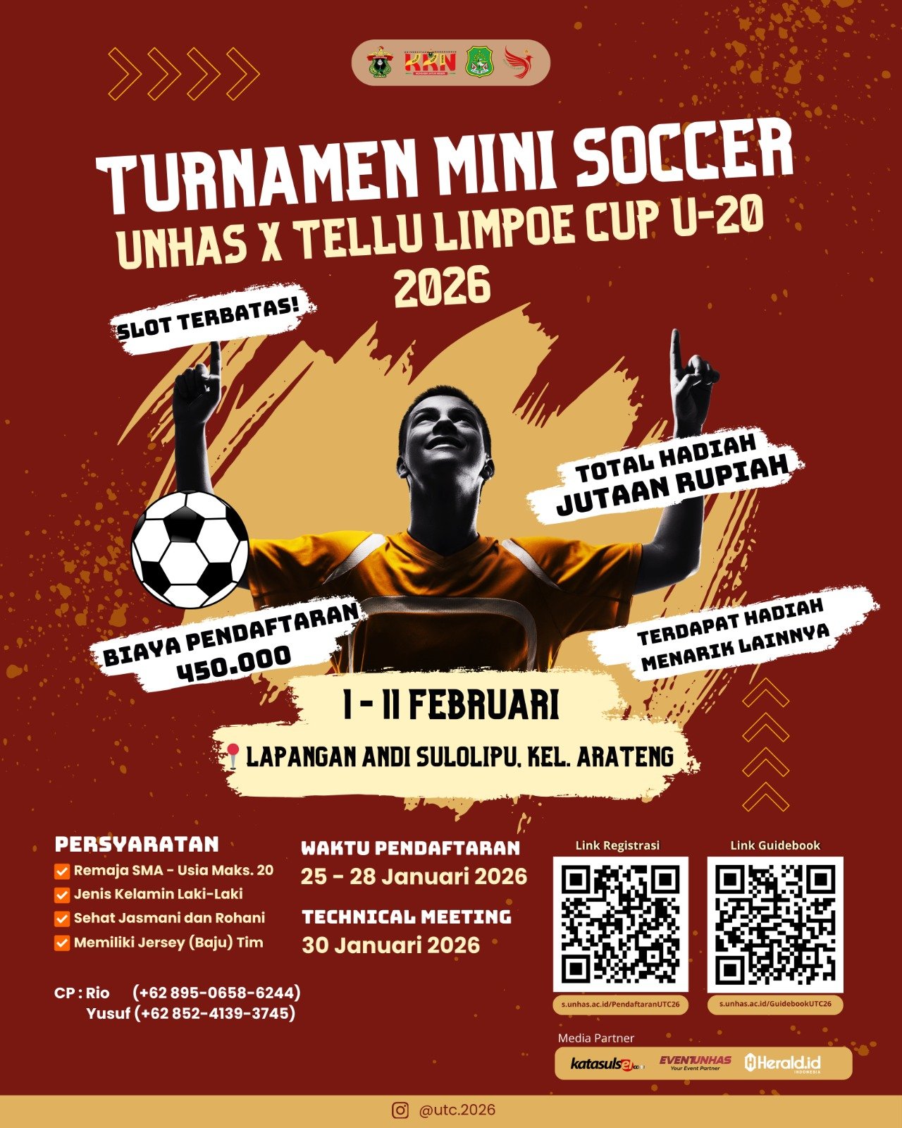 Turnamen Unhas X Tellu Limpo’E Cup U-20 dijadwalkan berlangsung pada 1–11 Februari 2026, dengan melibatkan tim-tim dari seluruh desa dan kelurahan di Kecamatan Tellu Limpo’E. Brial menegaskan, panitia telah menyiapkan regulasi pertandingan yang jelas guna memastikan kompetisi berjalan profesional dan menjunjung prinsip fair play.