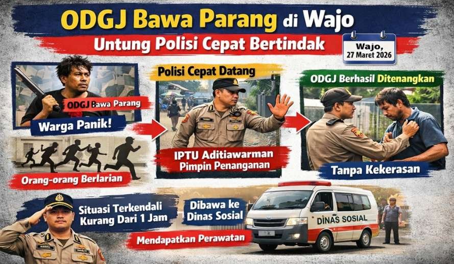 Seorang ODGJ tiba-tiba muncul sambil menggenggam parang, membuat warga sekitar panik.