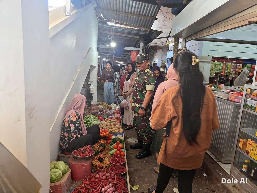 SIDRAP, Katasulsel.com – Demi memastikan ketersediaan barang dan menjaga kestabilan harga kebutuhan dasar masyarakat, Babinsa Koramil 05/Duapitue, Sertu Ilham Isamil, melaksanakan kegiatan pemantauan dan pengecekan harga bahan pokok di Pasar Sentral Tanrutedong, pada Sabtu (18/04/2026).