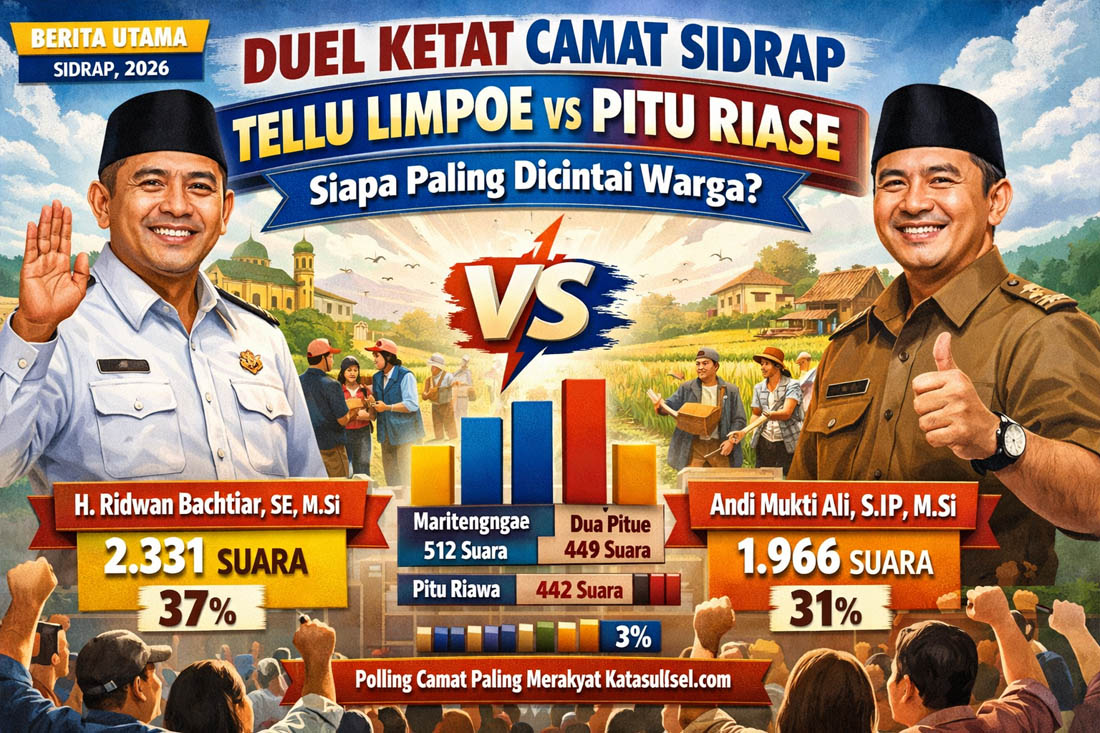 Sidrap, katasulsel.com — Memasuki pekan ketiga pelaksanaan, Polling Camat Paling Merakyat Sidrap yang digelar katasulsel.com ,semakin menunjukkan dinamika yang menarik. Dengan periode berlangsung sejak 3 April hingga 3 Juni 2026, artinya polling ini masih menyisakan sekitar 45 hari atau hampir 1,5 bulan ke depan.