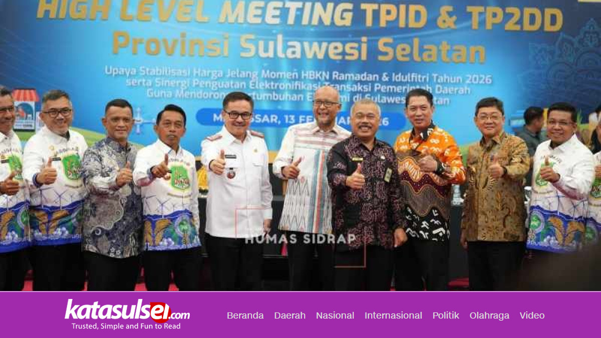 Makassar, Katasulsel.com – Bupati Sidrap Syaharuddin Alrif menghadiri High Level Meeting (HLM) Tim Pengendalian Inflasi Daerah (TPID) dan Tim Percepatan dan Perluasan Digitalisasi Daerah (TP2DD) Provinsi Sulawesi Selatan periode Januari 2026 di Ruang Pola Kantor Gubernur, Jumat (13/2/2026).