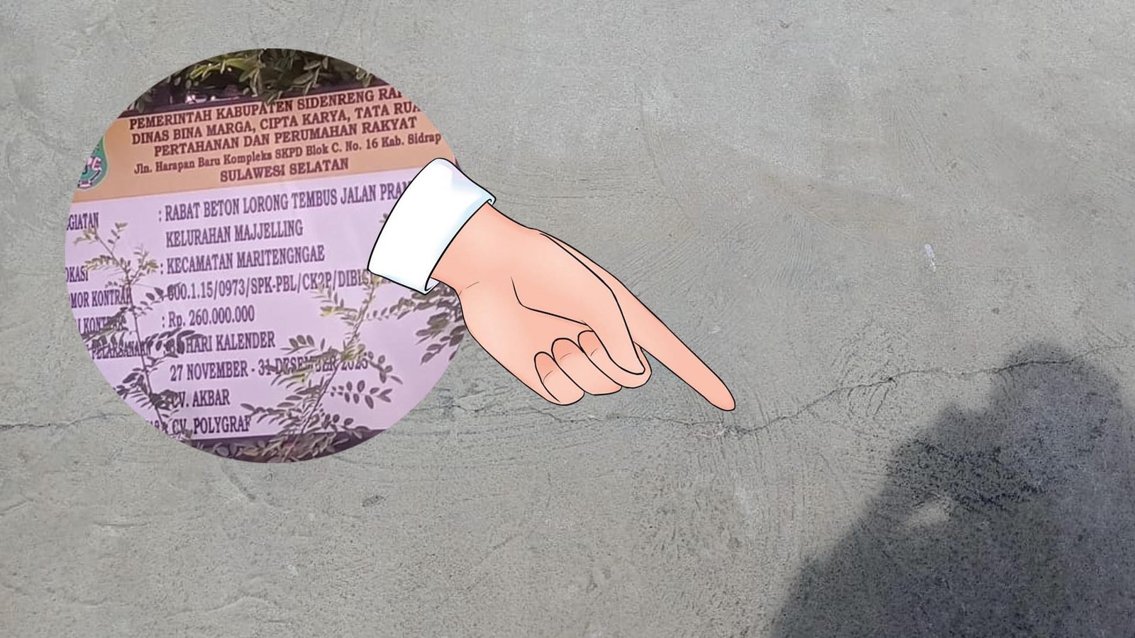 Proyek bernilai Rp 268 juta yang ditargetkan rampung pada 31 Desember 2025 itu terpantau mengalami retakan di sejumlah titik, meski baru saja selesai dikerjakan.