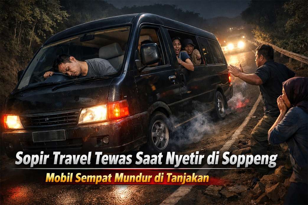 Soppeng, katasulsel.com – Perjalanan malam rute Sinjai–Parepare berubah menjadi tragedi. Seorang sopir travel berinisial SR (46) meninggal dunia secara mendadak saat masih berada di balik kemudi, Sabtu malam (4/4/2026).