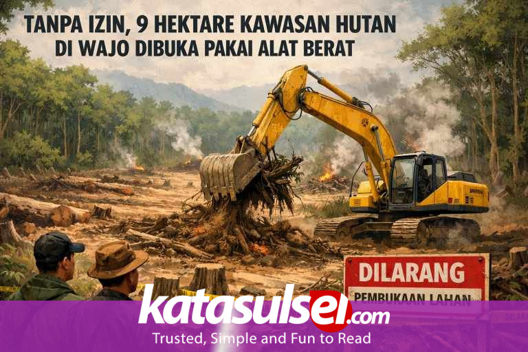 Wajo, Katasulsel.com — Hutan produksi bukan tanah kosong yang bisa dibuka sesuka hati. Tapi di Desa Passelloreng, Kabupaten Wajo, sekitar 9 hektare kawasan itu sempat berubah wajah. Pohon-pohon dibersihkan. Alat berat bekerja.