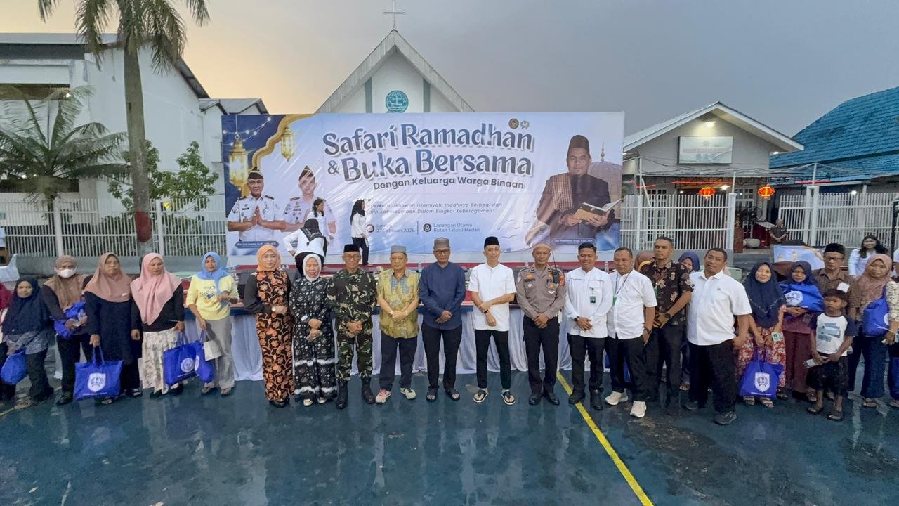 Medan, – Safari Ramadhan di Rumah Tahanan Negara Kelas I Medan berlangsung penuh khidmat dan kebersamaan. Kegiatan yang dirangkaikan dengan buka puasa bersama ini menghadirkan momen istimewa bagi 372 warga binaan yang berkesempatan berbuka puasa bersama keluarga mereka. Sementara itu, 1.171 warga binaan lainnya mengikuti buka puasa bersama di lingkungan Rutan bersama seluruh petugas dalam suasana religius dan penuh kekeluargaan. Jumat (27/02/2026).